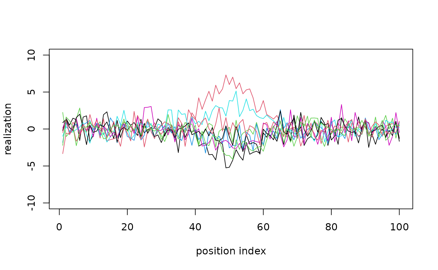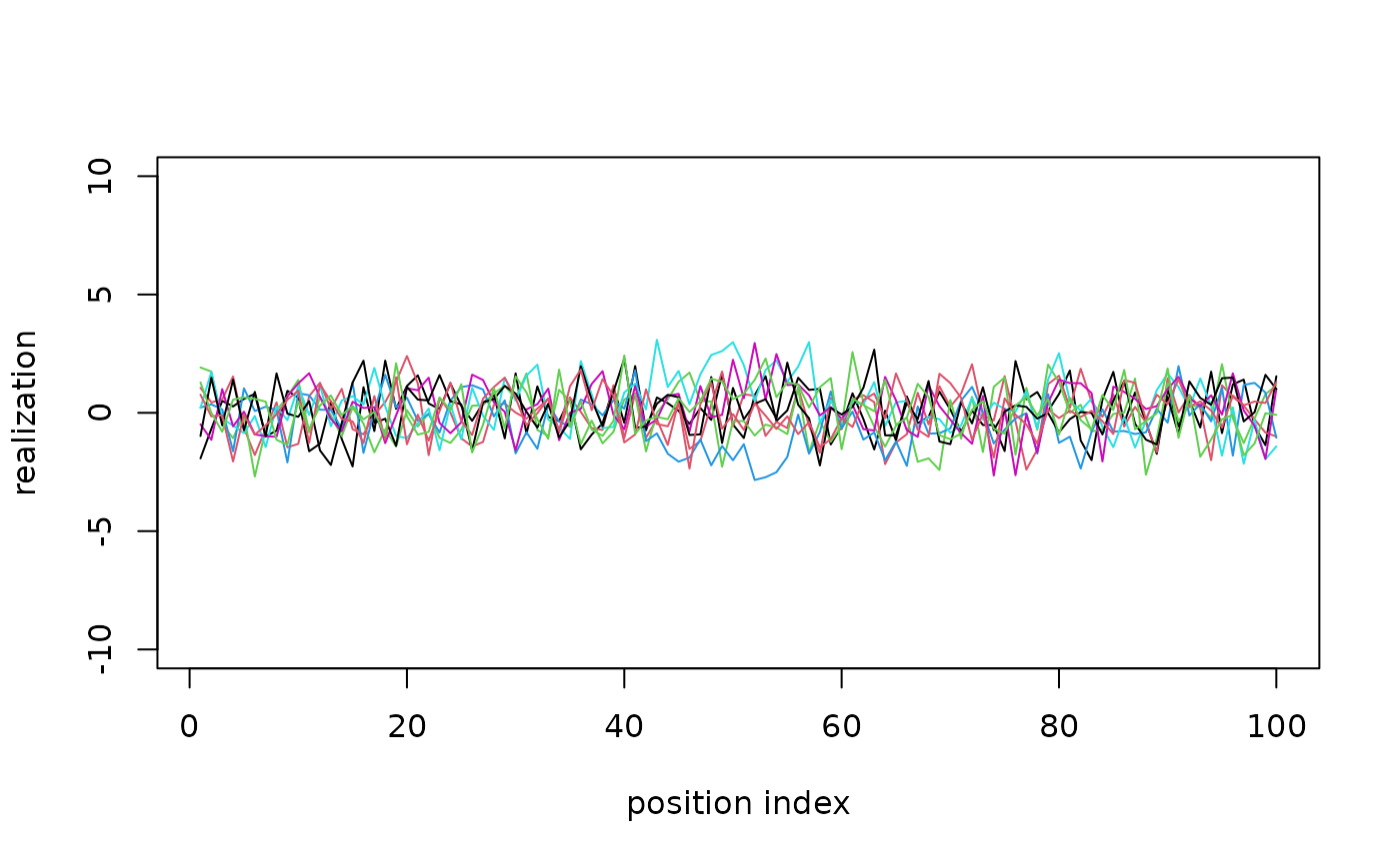 The underlying spatial pattern below indicates realizations will vary dramatically at the center and be almost unchanged at the both ends of the curve.